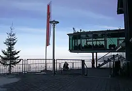 A cable car goes to the top of the mountain. The summit station includes a panorama restaurant with an expansive view of Switzerland and Germany and the Rhine Valley.