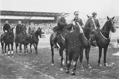 1928 Amsterdam. In the foreground the Polish team (from the left): Kazimierz Szosland, Michał Antoniewicz, Kazimierz Gzowski.