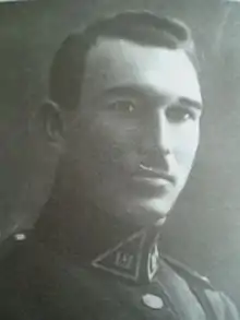 After graduation from the Veiveriai Pedagogical Seminary in 1912, Skučas worked as a teacher for a few years.[1] He then enrolled to the Pedagogical Institute of Petrograd. However, in 1915 he was drafted into the Imperial Russian Army and served in the Romanian front with the 249th Infantry Regiment.[2] In 1918 he returned to Lithuania and volunteered for the Lithuanian Army, where he began by organized police forces in Daugai. Skučas steadily rose through the ranks and in March 1928 he became the commander of the 2nd Infantry Division and the Kaunas garrison.[1]
