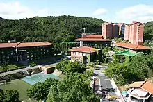 Keimyung University (계명대학교, Gyemyeong Daehakgyo), abbreviated as KMU or Keimyung (啓明), is a private university located in Daegu, the fourth largest city in South Korea. The university takes roots from Jejungwon founded in 1899.[1] The higher education started in 1954 with the support of the leaders of the Northern Presbyterian Church of the U.S. as a Christian university. KMU is composed of three campuses in the city of Daegu, South Korea. They are named for their locations within the city; Daemyeong, which is near the downtown area, Seongseo, which is in the western part of the city, and also Dongsan campus which includes Dongsan Medical Center. The university's Seongseo campus is known as one of the most beautiful campuses in South Korea.[3]