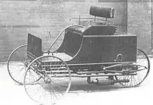 In 1897, Cadwallader "Carl" Kelsey, at the age of 17, built his first car. It was a small four-wheel car. In 1899, while at Haverford College, he built his second car with a friend named Sheldon Tilney. It had a 5-hp single-cylinder Buffalo Gasolene Motor Co. engine and only three wheels. They called it an Auto-Tri. They decided to go into full manufacturing, but their fathers thought the automobile was an "instrument of the devil" and so sent the two young men back to studying at college.[1] [2] The Kelsey and Tilney Auto-Tri was given to the Smithsonian Institution in 1923.[1]