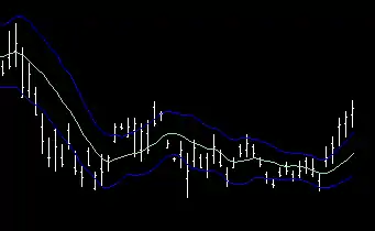 The lines above and below are drawn a distance from that center line, a distance which is the simple moving average of the past 10 days' trading ranges (i.e. range high to low on each day).