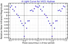 A near-infrared light curve for V421 Hydrae (Kelu-1), adapted from Clarke et al. (2002)[11]