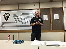 Hill is partnered with Rickdiculous Racing, where he directs the riding program.[19] Since its inception in 2015, he has also led the Rick Development Camp for aspiring championship racers, with support from Team Hammer M4 race team.[20][21][22] Hill designed the RDC curriculum with input from former World Superbike and AMA Superbike Champion Scott Russell, who is also on the program's coaching staff.[20][22]