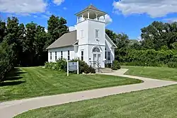 Kent Union Chapel and Cemetery is a historic building and cemetery located north of Brooklyn, Iowa, United States. They are named for the Kent family who moved to Poweshiek County from Putnam County, Indiana in 1853. They acquired property near Joseph Enochs who had arrived a year earlier. He and his wife Betsey donated a parcel of land for the cemetery in 1858. Moses Kent Sr. took possession of the land around the cemetery the following year and the area became identified with the Kent family after that.[2] By 1870 a school was built next to the cemetery, and both took the Kent name. The schoolhouse was also a community center where a variety of local functions were held, including church services and Sunday school classes. Because of a reorganization of the county's public schools, it was relocated a mile to the northeast in 1907. The following year the Kent Cemetery Aid Society was established by area women. They were Protestants, Catholics, and some claimed no religious affiliation. They decided to replace the schoolhouse with a union chapel. They signed a 50-year lease for the land and held a variety of fundraisers to raise the money to build the chapel. Many Brooklyn businesses donated materials for the project. It was dedicated on May 23, 1909. The chapel and cemetery was listed on the National Register of Historic Places in 2009.[1]