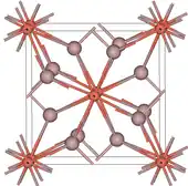 Khatyrkite viewed close to the tetragonal axis. Red balls are copper atoms.