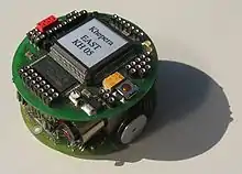 The Khepera is a small (5.5 cm) differential wheeled mobile robot that was developed at the LAMI laboratory of Professor Jean-Daniel Nicoud at EPFL (Lausanne, Switzerland) in the mid 1990s. It was developed by Edo. Franzi, Francesco Mondada, André Guignard and others.