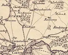 - Florian Kiedrzyński (died after 1791) - owner of the Kaczki Średnie estate, land burgrave of Zakroczym,[15] commissioner of the Kalisz voivodeship.[20] He was the son of Andrzej and Franciszka née Jackowski, owners of the Bieganin estate. His spouse was Barbara Mikołajewska, daughter of Antoni and Katarzyna Żurawska.[15]