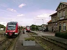 Trains crossing in Süderbrarup. Trains always cross here and in Gettorf.