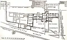 The school has moved location several times since its inception. By 1693 it was located in a building to the south-east of the chapel, next to King's Parade.[4] In this year that building was demolished and replaced with what was known as the New Brick Building which continued to house the school through to the nineteenth century.[5][4][3] In the 1820s during the rebuilding by William Wilkins, the brick building and adjoining Provost's Lodge were demolished, opening up a view of the chapel from the street. The outline of the foundations of the brick building can be seen on the lawn during long periods of hot dry weather.[3]