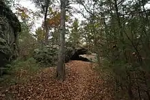 King Phillip's Cave is a cave in Norton, Massachusetts near Lake Winnecunnett. It may be accessed from Stone Run Drive off Plain Street near Bay Road and sits on a 7-acre (28,000 m2) parcel of land owned by the Land Preservation Society, an independent non-profit conservation organization chartered in 1970 by the State of Massachusetts.[1]