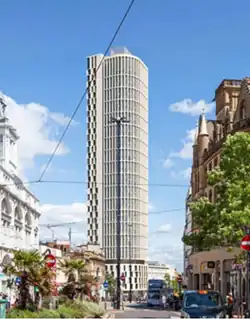 Kings Tower is an approved skyscraper[lower-alpha 1] that will be located on Castle Square at the junction of High Street and Angel Street in Sheffield, South Yorkshire. With a planned height of 120 m (390 ft) once completed,[1] Kings Tower will overtake Code Sheffield (once that is completed), and St Pauls Tower (current tallest building) as the tallest building in Sheffield and in Yorkshire.[2] Plans for the tower were submitted by architects Hodder + Partners in September 2020, calling initially for a 39-storey tower.[3] Planning permission was granted in December 2020,[4] and construction is planned to complete in 2023.[3] Amended plans were submitted in late 2022, adding a 40th floor to the project.