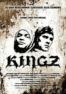 Kingz is a 2007 German short action science-fiction horror film[2] created by Benni Diez and Marinko Spahić about two young thugs (Olli Banjo and Mathis Landwehr) who go to a nightclub to close out a drug deal only to find something is not quite right about some of the patrons, including the owner (Bela B); the ensuing mayhem involves martial arts, swordplay, and gunfighting.[3] The short film was shown at international film festivals and won a Méliès d'Argent in 2009.[2]