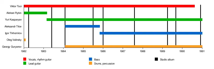 | Past members | Viktor Tsoi† Yuri Kasparyan Georgy Guryanov† Igor Tikhomirov Aleksei Rybin Oleg Valinsky Alexander Titov |