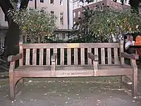 In 2001, a bench was placed by the southern entrance to London's Soho Square as a memorial to her, after a lyric from one of her most poignant songs: "One day I'll be waiting there / No empty bench in Soho Square". Every year on the Sunday nearest to MacColl's birthday, 10 October, fans from all over the world hold a gathering at the bench to pay tribute to her and sing her songs.[28]