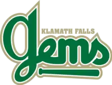 The Klamath Falls Gems were a collegiate wood bat baseball team based in Klamath Falls, Oregon. They began as an expansion team in the West Coast League in 2011 and played their home games at Kiger Stadium, which is also the home of the Oregon Tech Owls. They were named after the former Class-D Far West League affiliate of the Philadelphia Phillies that played from 1948 to 1951. They previously played in the Golden State Collegiate Baseball League from 2016 to 2017 and were members of the Great West League, having joined that league in October 2017 and played during the 2018 season.[1] They were without a league as the GWL suspended operations on October 4, 2018, and have eventually ceased operations themselves without notice. The owner Joe O'Connor was being given until December 31, 2018, to renew the lease or the team will be considered defunct.[2] There was no response and the franchise was officially considered defunct.