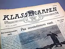 Klassekampen ('The Class Struggle') was a Norwegian newspaper. It was established in 1909 as an organ for the youth movement of the Norwegian Labour Party,[1] Norges socialdemokratiske ungdomsforbund. Its editor-in-chief from 1911 to 1921 was Eugène Olaussen.[2]