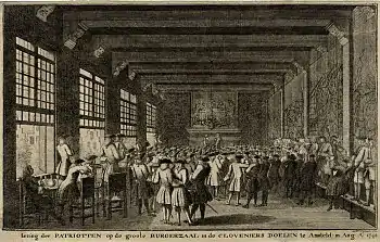 From 9 August to 15 September 1748, the great hall hosted public gatherings of the Doelisten, a local protest group of mostly merchants opposing the perceived nepotism and corruption of the well-to-do who dominated Amsterdam's city government. The crowds that gathered in the hall were so large, some feared that the floor would collapse under the weight.