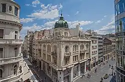 One kilometer long Knez Mihailova Street was protected in 1964 as the spatial cultural-historical unit, the first cultural monument of that type in Belgrade.[1] In 1979 it was elevated to the Spatial Cultural-Historical Units of Great Importance, and as such is protected by the Republic of Serbia.[2]