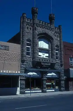 The Pythian Castle was originally owned and commissioned by the Knights of Pythias, an international, non-sectarian fraternal order, established in 1864. The building was designed by Boise, Idaho architectural firm Tourtellotte & Hummel. The cut stone for the front was supplied by Roberts and Sheff and quarried at Sand Hollow, near Weiser. The masonry work was completed by Hamilton and Reader Masonries of Weiser, Idaho.[2]