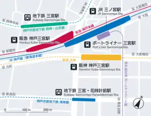 Kobe-Sannomiya Station (神戸三宮駅, Kōbe-Sannomiya-eki), or simply Sannomiya Station (三宮駅, Sannomiya-eki), is a major interchange station located in the Sannomiya area in the heart of Kobe, Japan. This station is the main transport hub of Kobe.