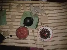 Kocho (Ge'ez: ቆጮ, ḳōč̣ō) is a bread-like fermented food made from chopped and grated ensete pulp. The pseudo-stem of the ensete plant contains a pith that is collected, pulped, and mixed with yeast before being fermented for three months to two years.[1] It is used as a staple in Ethiopian cuisine in place of or alongside injera. In 1975 more than one-sixth of Ethiopians depended completely or partially on kocho for a substantial part of their food.[2] It is eaten with foods such as kitfo, gomen (cooked greens), and ayibe (cheese). The stem is pounded to extract the pulp, which is then fermented for several weeks before being cooked. Kocho is often served with stews and is a staple food in some parts of Ethiopia. It has a sour taste and a dense, dough-like texture.[3] It is made from the scraped leaf sheath fibre and pulverised corm of the enset plant. Kocho can be stored underground from three months to twelve months, making it a ready source of nutrition during periods of food scarcity. Kocho is typically used as a utensil to scoop up other foods.[4]