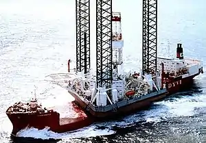 On December 18, 2011, the rig, which was under tow during a fierce storm, capsized and sank in the Sea of Okhotsk. It was being towed by the icebreaker Magadan and the tugboat Neftegaz-55 having just completed an exploration well for Gazprom off the Kamchatka Peninsula. The incident happened some 200 kilometres (120 mi) off the coast of Sakhalin island, in waters more than 1,000 metres (3,300 ft) deep.[4] In terms of operational safety, the towing operation's compliance with best practices was doubtful since the platform’s manufacturer explicitly stated that "towing is prohibited in the winter, in winter seasonal zones."[5]