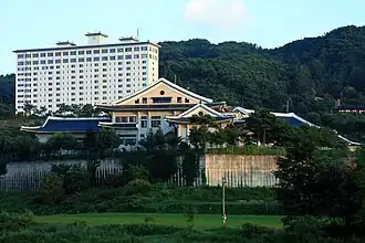 Korean Minjok Leadership Academy (KMLA; Korean: 민족사관고등학교, Hanja: 民族史觀高等學校; Minjok Sagwan Godeunghakgyo, lit. '"People's History High School"')[2][3][4][5][6] is a co-educational, independent boarding high school near the town of Hoengseong, Gangwon, South Korea, 120 kilometers (75 mi) east of Seoul at an elevation of 600 meters (1,900 feet). Located on 1.27 square kilometers (314 acres), it is one of the largest institutions in terms of contiguous area in the nation. One of the most selective secondary boarding schools in South Korea, KMLA is reputable for the placement of its graduates at eminent universities.[7][8][9] KMLA is a member of the G20 Schools group.[10]