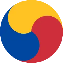 Shrines at which the musok rituals are performed are called kuttang or kut dang (굿당) and are typically located on mountains in South Korea.[225] Shrines dedicated to significant tutelary spirits are known as tang or pugundang,[226] and were historically often the foci for local cults, such as those devoted to apotheosised heroes.[227] Kuttang will often be identified on the exterior by the presence of a t'aegŭk symbol, a circular swirl of red, blue, and yellow that symbolizes the cosmos.[228] The main ritual room is called the kut bang,[229] and often contains an offering table on which offerings are placed.[229] Mudang often rent a kuttang to perform their rituals, especially if they do not have the room for such rites in their home.[230]