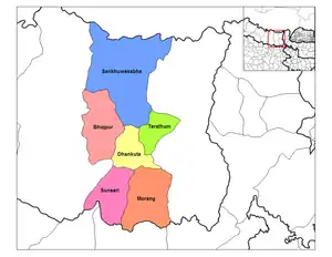 Kosi was divided into six districts; since 2015 these districts have been redesignated as part of Province No. 1.