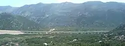 The Kotezi Viaduct is a reinforced concrete viaduct carrying the A1 motorway in Croatia between Ravča and Vrgorac, across the Bunina Polje. It is 1,227 metres (4,026 ft) long and 28 metres (92 ft) wide, built as a dual structure, each part carrying two traffic lanes and an emergency lane.[1] The Kotezi Viaduct is the second-longest viaduct along the A1 motorway route, surpassed only by the Drežnik Viaduct.[2] The viaduct was built by a joint venture of DYWIDAG and Strabag and it represents the most complex structure along the Ravča–Vrgorac section of the A1 motorway.[3]