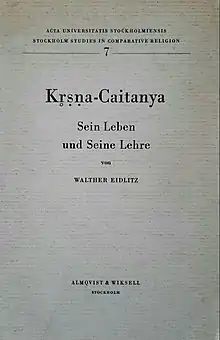 - ↑ Eidlitz, Walther (1968). "Vorwort". Krsna-Caitanya, Sein Leben und Seine Lehre (in German). Stockholm: Almqwist&Wiksell. p. 11.