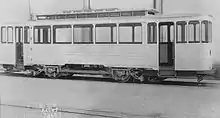 The second class consisted of fourteen units delivered by Skabo between 1887 and 1892. These were delivered in various configurations of open and closed seating and were normally only operated during winter. They had the same dimensions as the Stephenson cars.[1] The final class, built by Falkenried, consisted of fifteen units delivered in 1897. Measuring 6.6 meters (22 ft) in length, they were sufficiently heavy they needed to be hauled by two horses. This was a calculated choice, as they were primarily intended to be used as trailers for the electric trams.[6]