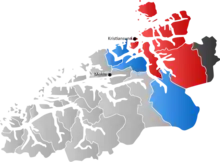 Kristiansund Airport (Norwegian: Kristiansund lufthavn; IATA: KSU[3], ICAO: ENKB) is an international airport serving Kristiansund, Norway. It is situated at Kvernberget on the island of Nordlandet and is the sole scheduled airport serving Nordmøre. The airport features a 2,390-meter (7,840 ft) runway aligned 07/25. In addition to scheduled services operated by Scandinavian Airlines and Widerøe, it serves offshore helicopter traffic to the Norwegian Sea operated by CHC Helikopter Service. Kvernberget handled 314,084 passengers in 2018.