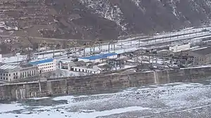 Kuunbong station viewed from the Chinese side of the Chasŏng Dam.