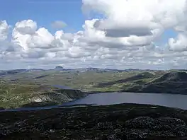 Kvennsjøen is a lake in the municipality of Ullensvang in Vestland county, Norway. The 5.05-square-kilometre (1.95 sq mi) lake lies on the Hardangervidda plateau, inside the Hardangervidda National Park. The alpine lake is located 35 kilometres (22 mi) straight east of the town of Odda and about 45 kilometres (28 mi) south of the village of Eidfjord. There are over 500 lakes in Ullensvang municipality and this one is the largest of all of them.[1]