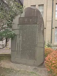 Kyoto Prefectural University of Medicine Ryobo-In monument was erected to celebrate the opening of the original hospital building on July 18th 1880. The Institute of Kyoto Prefectural University of Medicine, as it was originally known, was modeled on the design of Leipzig University Hospital in Germany, and was one of the best medical establishments in Japan at that time.