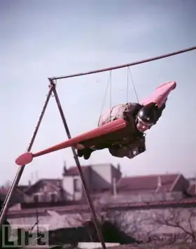 Léon Alfred Nicolas Valentin (22 March 1919, Épinal (Vosges), France - 21 May 1956, Liverpool, England) was a French adventurer, who attempted to achieve human flight using bird-like wings. Léo Valentin is widely considered to be the most famous "birdman" of all time.[1][2][3] He was billed as "Valentin, the Most Daring Man in the World".[4]