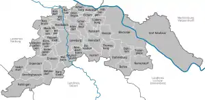 Lüneburg is a district in Lower Saxony, Germany. It is bounded by (from the southeast and clockwise) the districts of Lüchow-Dannenberg, Uelzen, Heidekreis and Harburg, and the states of Schleswig-Holstein (district of Lauenburg) and Mecklenburg-Western Pomerania (district of Ludwigslust-Parchim).