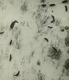 "Beginning in 1986, the legendary biologist L. David Mech spent 25 summers observing wolves..."[5] on Ellesmere Island. Mech said that his research on the wolves at Ellesmere Island was different because it is one of the few places where the wolves are not afraid of people, making that experience one of the best in his life.[6] This project in 1986 when photographer Jim Brandenburg told him of white wolves he had seen on Ellesmere Island during an assignment for National Geographic.[4] Mech recognized the rare opportunity to study wolves that had never been hunted and had little fear of humans. Also there were no trees or bushes to hide them from view in the tundra. In the summer Mech found the den near the military and weather base at Eureka. They witnessed the interactions within the family unit and the wolves hunting musk oxen. This type of research had not been done before. In an interview Mech said "The kind of stuff I got here was not just the objective behavioral stuff, but the kind of thing you get from living with a pet of some sort. You get an insight into the thing. You get to know the animal."[4] Mech and Brandenburg together produced several articles and a film for National Geographic.[4]
