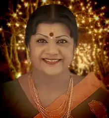 Lourde-Mary Rajeswari, better known as L. R. Eswari, is an Indian playback singer who has sung many songs in Tamil, Telugu, Malayalam, Kannada, Hindi, Tulu, and English.[1] She was awarded with the Kalaimamani, the highest civilian award for Arts and culture in Tamil Nadu, for her contributions to the film industry.