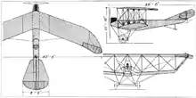 The fuselage was flat sided and rectangular in section, with the engine exposed in the nose and the passenger/observer's cockpit immediately behind it. In some engine installations the radiator was mounted along the fuselage side, with this cockpit between them. The pilot's cockpit, fitted like the passenger's with a celluloid windscreen, was much further aft at about mid-fuselage with the main fuel tank between them. Because the LFG had a very broad chord, low aspect ratio horizontal tail of the sort known at the time as "Taube type", he sat not far in front of its leading edge. The tailplane carried an undivided elevator. There was a triangular fin and a high, rounded and balanced rudder. The Arrow had a fixed, conventional undercarriage with V-form struts, their leading members bent round into short skids laterally connected by a rod to which the wheels, on their single axle, were joined via rubber shock absorbers.[6][7]
