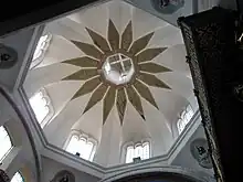 The church was consecrated in 1778 with Our Lady of the Pillar and Saint John of Nepomuk as patrons[2] by the Archbishop of Mexico, Alonso Núñez de Haro y Peralta.[6] The relics used to consecrate the church included a fingerbone from Saint John, a 25 cm gold statue of him, as well as a shroud that had been in contact with the Shroud of Turin. A wooden statue of Our Lady of the Pillar, which was inherited by Mother Maria Ignacia from her mother, was placed on the main altar.[2]