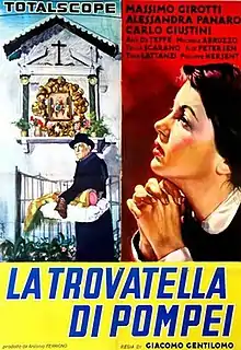 La trovatella di Pompei (lit. The Foundling of Pompei) is a 1957 Italian melodrama film co-written and directed by Giacomo Gentilomo and starring Massimo Girotti and Alessandra Panaro.[1][2]