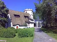 The architecturally exceptional Villa Åkerblom is located at the sea shore in eastern Laajalahti.[3]:132