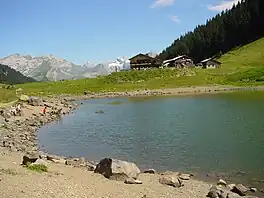 Lac de Gers is a lake above Samoëns in Haute-Savoie, France. The lake's water level varies seasonally up by 2 m. Its maximum surface area is 6.5 ha.