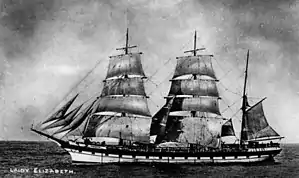 - ↑ Flapan, Mori. "The Barque Lady Elizabeth". boatregister.net. Historic ships of the world. Retrieved 16 September 2015.