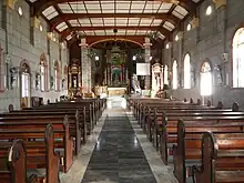 The Our Lady of Most Holy Rosary Parish Church (Spanish: Iglesia Parroquial de Nuestra Señora del Santísimo Rosario), commonly known as Makinabang Church or Bisitang Pula, is a Roman Catholic Marian church in Barangay Makinabang, Baliuag, Bulacan, Philippines. On October 7 it is one of four Roman Catholic parish churches in the municipality and is the focus of one of its largest processions each year. The other nearby Baliuag parishes which bound the church are: Saint Augustine Church (Población); Holy Family Parish (Tangos); and Our Lady of Mount Carmel (Sabang).[1][2] The church is also about 2 miles from its neighbor, Sub-Parish Church of Sto. Cristo in barangay Santo Cristo.