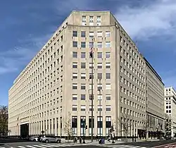 The Lafayette Building, also known as Export-Import Bank Building, is a federal government office building at 811 Vermont Avenue NW in Washington, D.C. Completed in 1940, it was declared a National Historic Landmark in 2005.[2] Its landmark designation was made because it was home to the Reconstruction Finance Corporation, the government arm that financed and oversaw the mobilization of the United States economy during World War II.[3] It is currently home to the Export–Import Bank of the United States and to offices of the United States Department of Veterans Affairs.