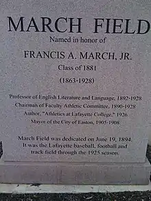 - ↑ March, Francis A. (1926). Athletics at Lafayette College. Easton, PA: Lafayette College. p. 150.
